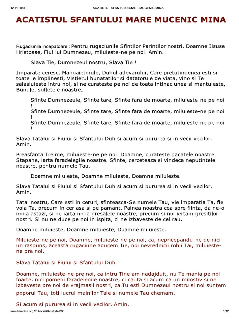 în numele tatălui şi al fiului şi al sfântului duh. About press copyright contact us creators advertise developers terms privacy policy safety how youtube works test new features press copyright contact us creators. Mare mucenic mina rugăciunile începătoare. Acatistul sfantului mina este citit indeosebi de cei pagubiti.