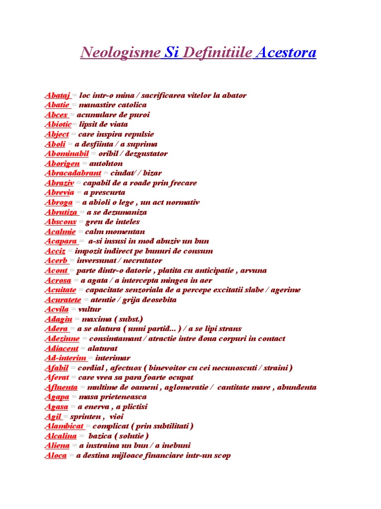 Gasiti aici aproape toate cuvintele din limba romana impreuna cu explicatii definitii. Cuvintele sunt din diverse domenii. Toate cuvintele care încep cu litera n. Imi place sertarul cu abacedar 10 0 raspunde.