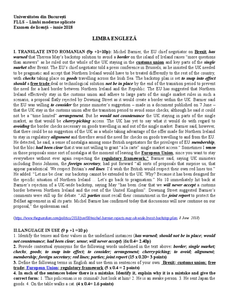 Examen de licenta in engleza. Examenul de licenta secția traducători și interpreți iunie 2018. Am cautat pe net si nu am gasit aceasta exprimare. Examenul de licenta engleza a iunie 2018 format si bibliografie. Cred k de aici diferenta intre examenul de diploma si examenul de licenta.