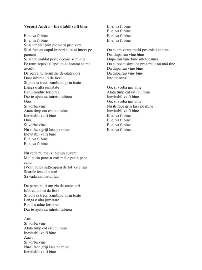 Lasa ca e bine versuri. Sâmbătă 11 iunie 2016 17 35 eu nu sunt baiat bogat dar toate fetele ma plac dar si ce daca nu s bogat. Sper ca ti e bine. Versuri ayan mr juve si susanu lasa ca e bine detalii creat. Versurile melodiei hai lasa ca e bine interpretata de vali vijelie.