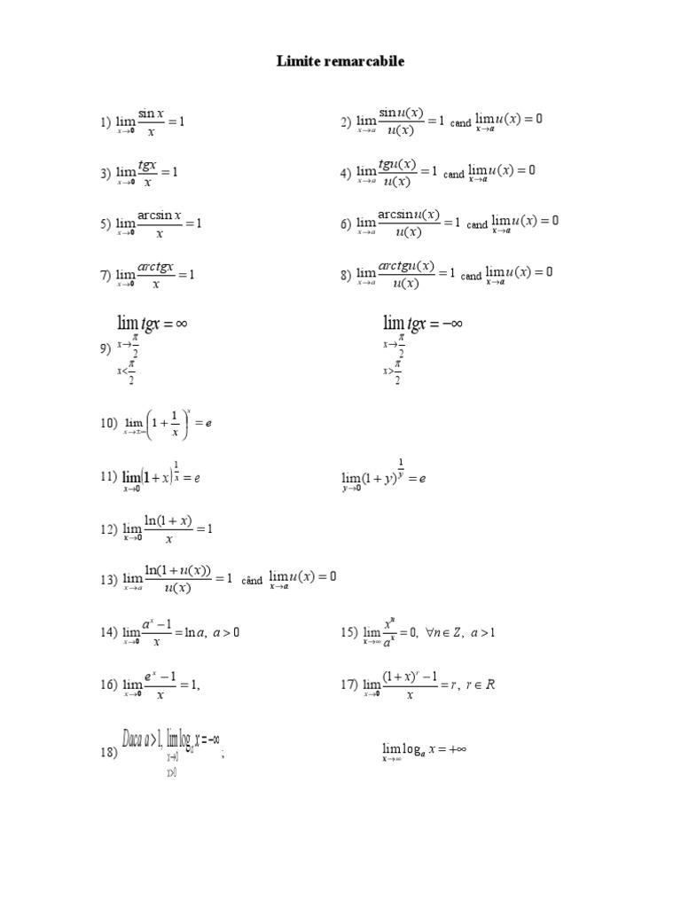 Schimba orientarea telefonului pe orizontala. Not iuni de teoria mult imilor de exemplu dac a aeste mult imea tuturor numerelor prime atunci 11 2 a si 12 2 a. Limite remarcabile exceptii salvează mi numele emailul și situl web în acest navigator pentru data viitoare când o să comentez. Limitele in care inlocuind variabila x cu valoarea la care tinde obtinem o valoare numerica finita sau infinita acceptata iar aceasta ramane si rezultatul limitei in punct.