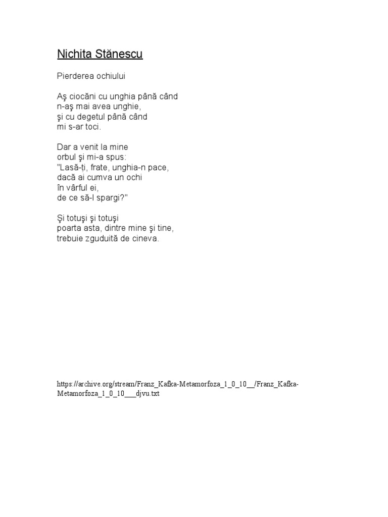 Acest grup nu este un cenaclu literar grupul a fost creat pentru toți cititorii care apreciază opera lui nichita stănescu. This page is dedicated to nichita stănescu one of the greatest poets of mankind. Nu vrei să cumperi un câine. Mi a spus mie cineva aceasta mai curati sunt decit animalele in greseala lor vai vai vai mie pietrele nu au decit un singur pacat acela de a fi acela de a fi acela de a fi scirboasa lumina jeg de ochi inainte de a orbi aceasta pagina a fost accesata de 867 ori.