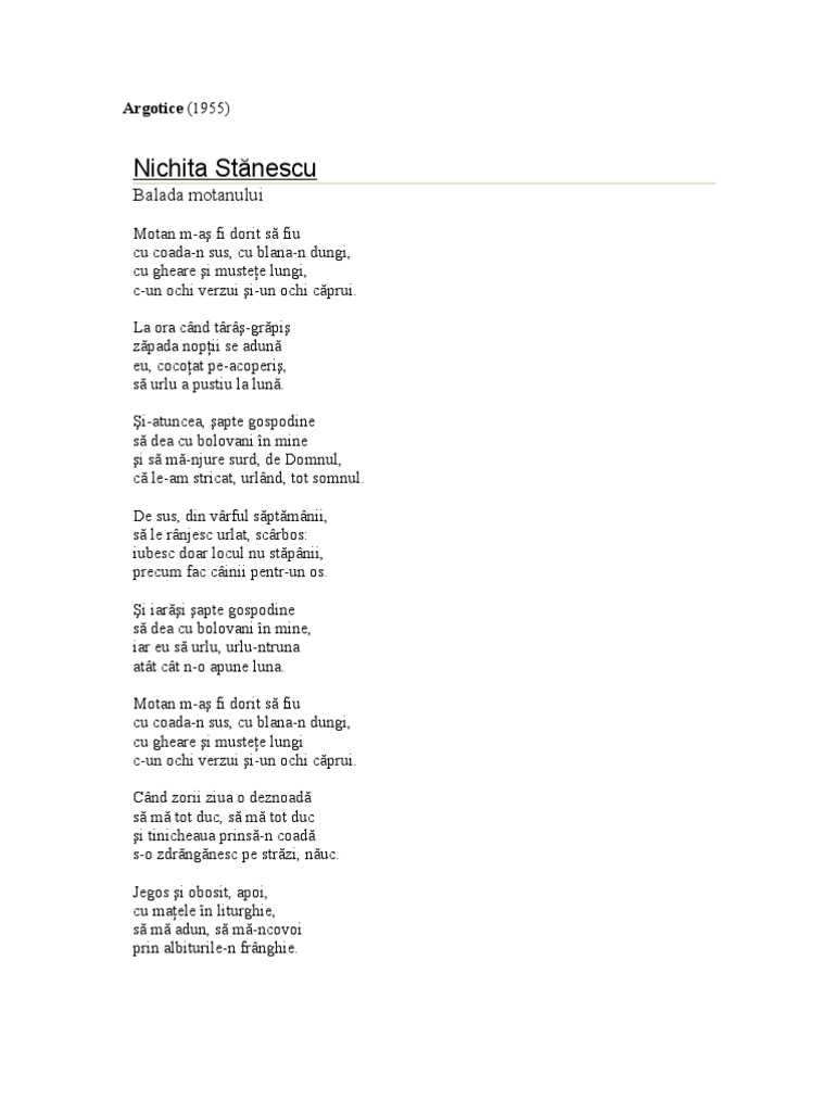 Nu Mor Caii Cand Vor Cainii Nichita Stanescu