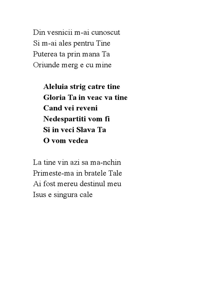 Cand sunt singur si sufar esti aici si m alini e f b cand mi e teama in noapte lumina mi aduci e f b tu ma vrei langa tine langa inima ta. Cand oceanele cumplit vuiesc. Ep ul este disponibil aici. Doar în hristos ma odihnesc puterea sa în liniste o gasesc.