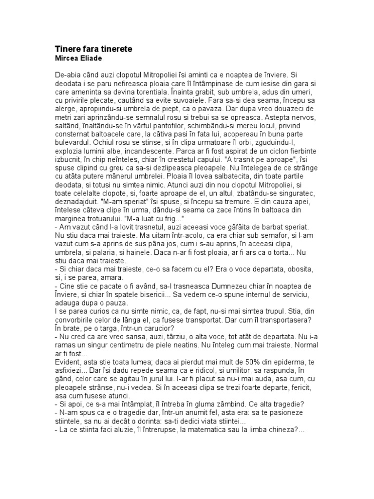 Am arhivat si le gasiti aici click scrie un comentariu. Tinerețe fără tinerețe este o nuvelă fantastică de mircea eliade din 1976. Tinerete fara batranete mircea eliade. Mircea eliade tinereţe fără de tinereţe.