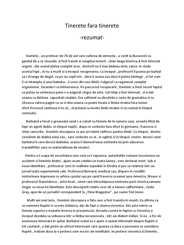 Ma bucur ca ai apreciat acest film. Online carti ebooks in limba romana in curte la dionis incognito la buchenwal ivan les trois graces limba romana maitreyi mircea eliade. Iti recomand sa si citesti tinerete fara tinerete. Prezintă viața lui dominic matei un bătrân profesor român care în urma unui eveniment catastrofic întinerește și posedă abilități intelectuale deosebite.