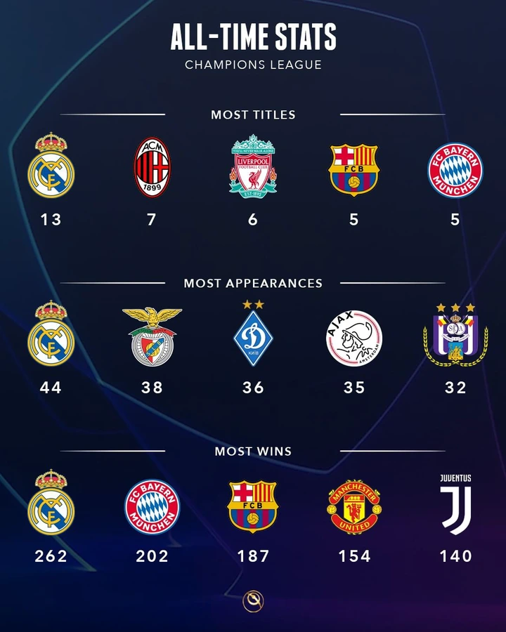 Check out the full list how many titles each side has and who they beat in the final s. Who has won the most uefa champions league titles. Real madrid comfortably leads the all time winners list of the competition ahead of ac milan and liverpool. Real madrid hold the record for the most victories having won the competition 13 times including the inaugural edition.
