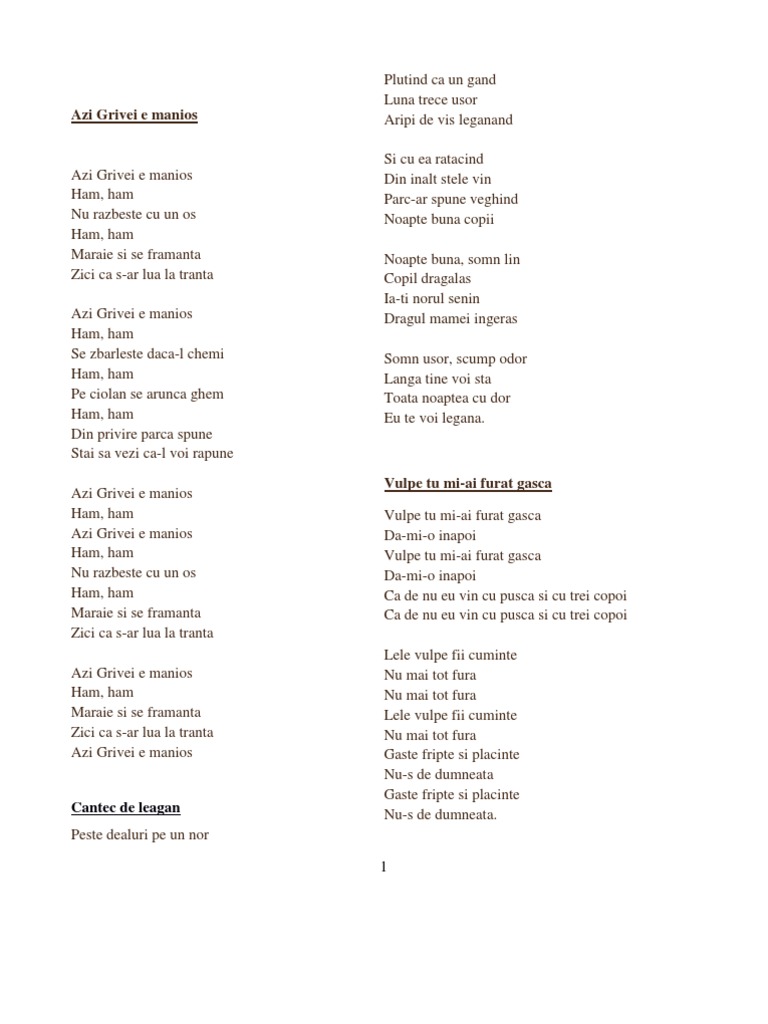 O ratusca dintr un stol. N am si eu o rata sa mi fie soata sot sa i fiu eu. Iar eretele hai hui a zburat de mila lui intr un codru indepartat mac mac mac mac. Mac mac mac mac.