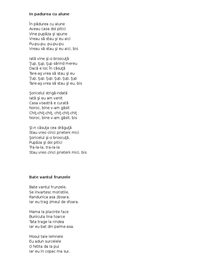 Vreau si eu o rata sa mi fie soata. Insa intr o buna zi chiar pe lac in zbor veni. Chiar o clipa mai apoi aparu clar un ratoi care n urma macanea mac mac mac mac. Iar pe lac i a placut nespus chiar daca privind de sus. Pestii se sacrificau si cu peste il hraneau ca sa fie sanatos mac mac mac mac.